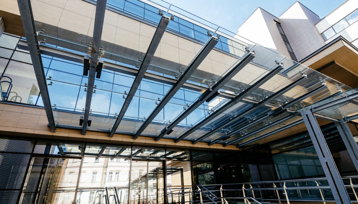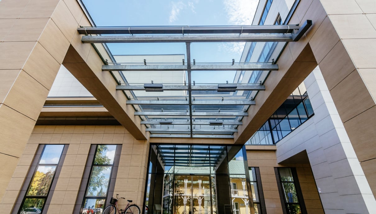 Различные типы зданий, где могут устанавливаться стеклянные козырьки