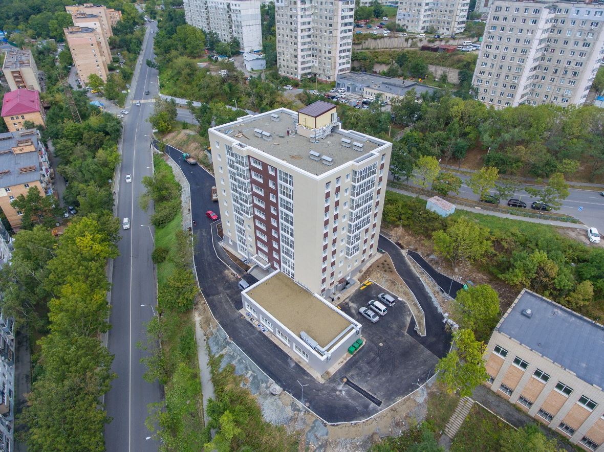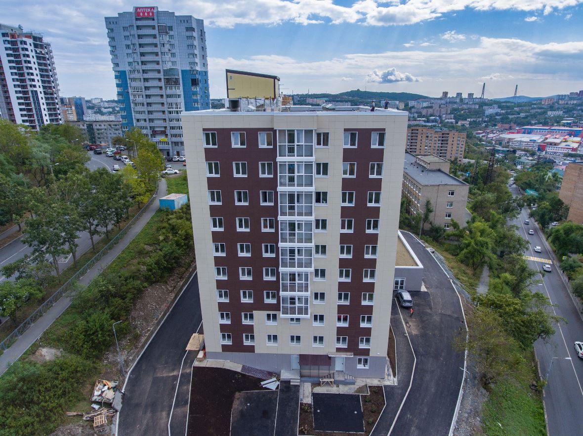 Также навесной вентилируемый фасад прекрасно подойдет для реконструкции старых зданий. Например, в рамках краевой программы «Арендное жилье» во Владивостоке в доме на улице Спиридонова реконструировано здание бывшего общежития ДВФУ. Всего здесь ждет новых жильцов 72 квартиры. Нашими специалистами на данном объекте выполнен монтаж вентилируемого фасада: