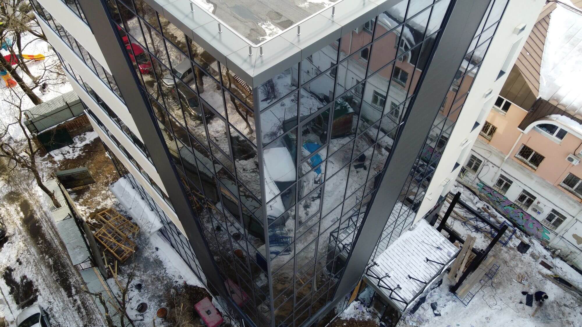 В частности, наша компания установила витражи и выполнила фасадные работы для административного здания на Семеновской в центре Владивостока: